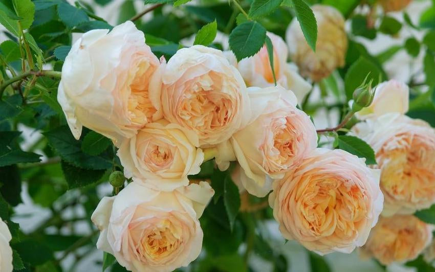 Englische Kletter- und Ramblerrosen lassen sich wunderbar leiten. Ihre biegsamen Triebe und ihre ausdauernde Blüte machen sie ideal für vertikale Pflanzungen. Alle drei besitzen die Kraft und den Charakter, eine dauerhafte und üppige Wandgestaltung zu schaffen.