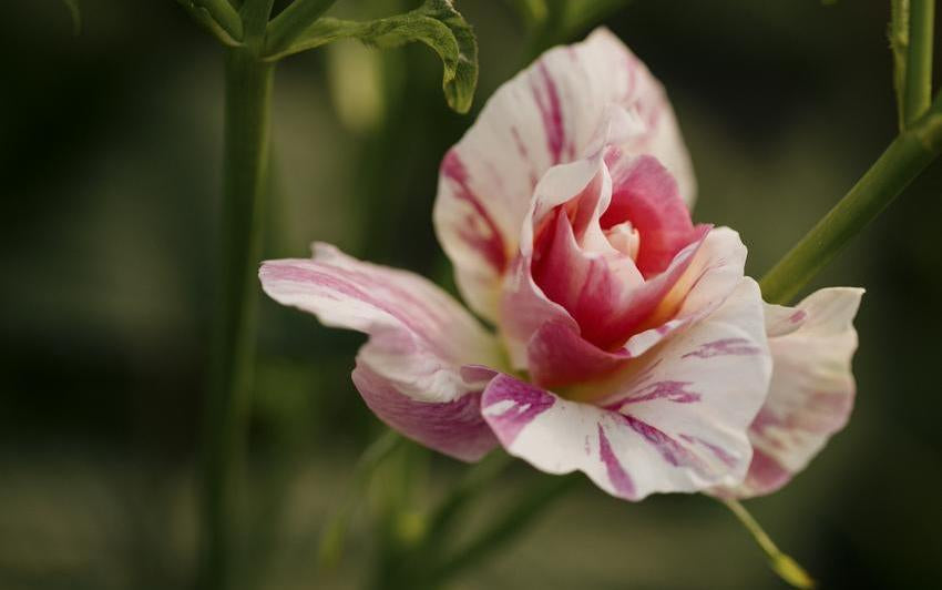 In leuchtendem Fuchsienrosa und zartem Weiß gleicht keine Blüte der anderen – jede wirkt wie eine kleine Aquarellstudie. Die halbgefüllten Blüten öffnen sich weit und zeigen goldene Staubgefäße, die Bestäuber zum Verweilen einladen. Ihre offene, entspannte Form verleiht der Pflanze eine natürliche, wiesenartige Wirkung, die sich gleichermaßen in traditionelle wie moderne Pflanzungen einfügt.