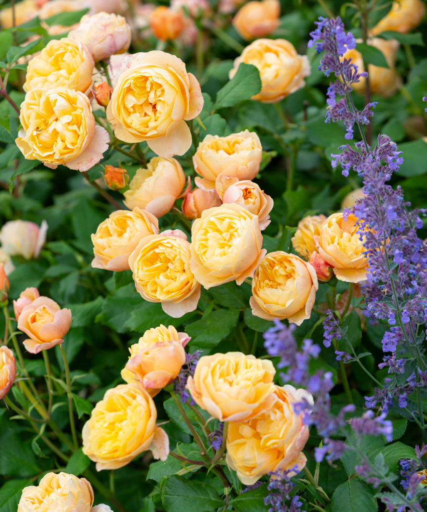 Rosa 'Bring me Sunshine' (Ausernie) - eine helle und freundliche Rose mit kräftigen gelb-orangenen Blüten und einer sonnigen Ausstrahlung.