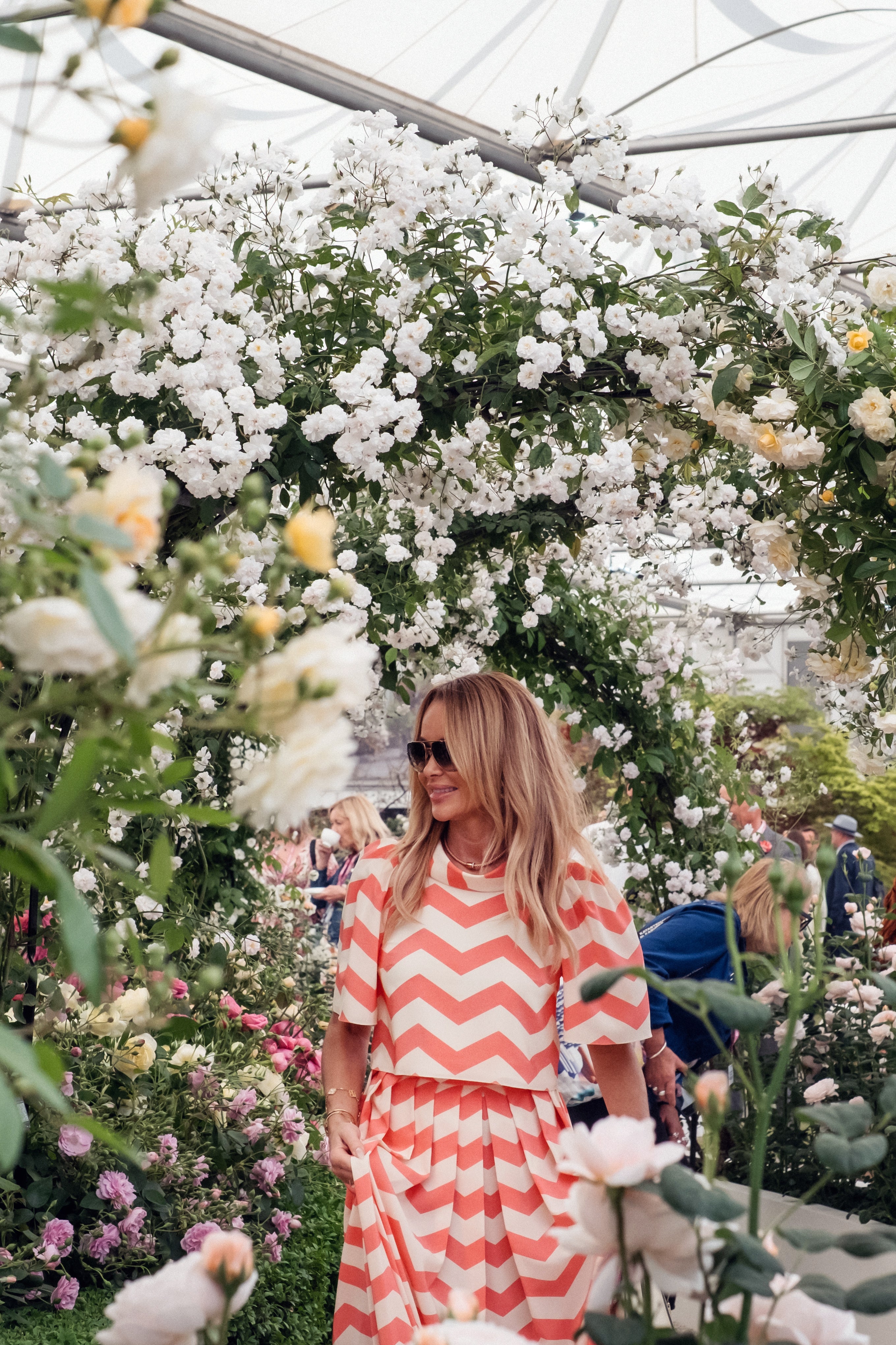 Auch wenn dieser Garten für Chelsea geschaffen wurde, lassen sich viele seiner Ideen in den eigenen Garten übertragen. Unterschiedliche Rosentypen – Strauchrosen, Kletterrosen, Rambler und Stammrosen – zu kombinieren, bringt Tiefe und Vielfalt. Kräftige Farben mit sanften, aufrechte Formen mit überhängenden zu mischen, erzeugt Bewegung und eine erzählerische Qualität. Strukturelemente wie Hecken oder vertikale Elemente helfen dabei, diese Geschichte zu ordnen und den Blick zu lenken.