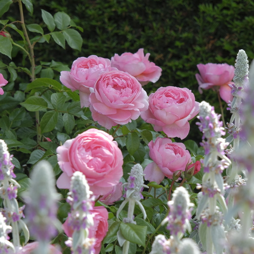 • Für ein kühleres, ruhigeres Gefühl kombinieren Sie rosafarbene Rosen mit kühlen Grüntönen und Lavendel. Diese Pflanzen können entlang von Gartenwegen, in der Nähe von Sitzbereichen oder in schattigen Ecken gepflanzt werden, um eine friedliche Atmosphäre zu schaffen.