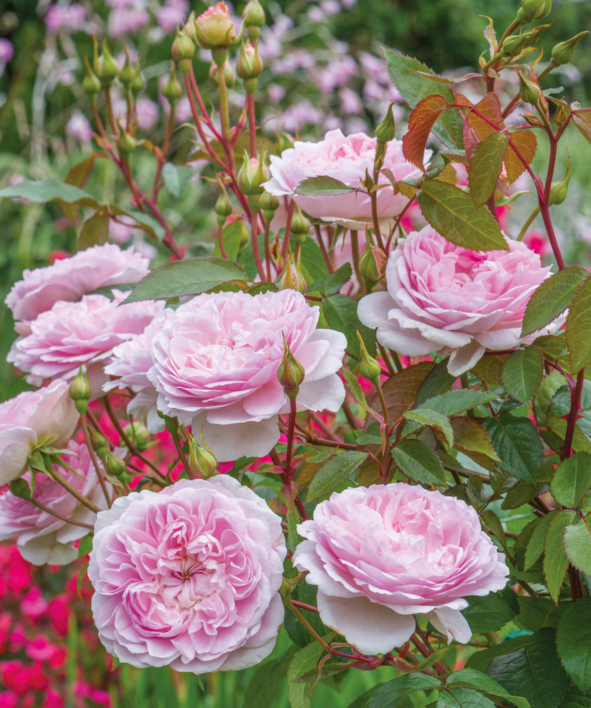 Es ist immer eine der ersten Englischen Rosen, die zu blühen beginnen. Ihre perfekt gedrehten Knospen öffnen sich zu großen, rosettenförmigen Blüten in leuchtendem Pink.GERTRUDE JEKYLL®
