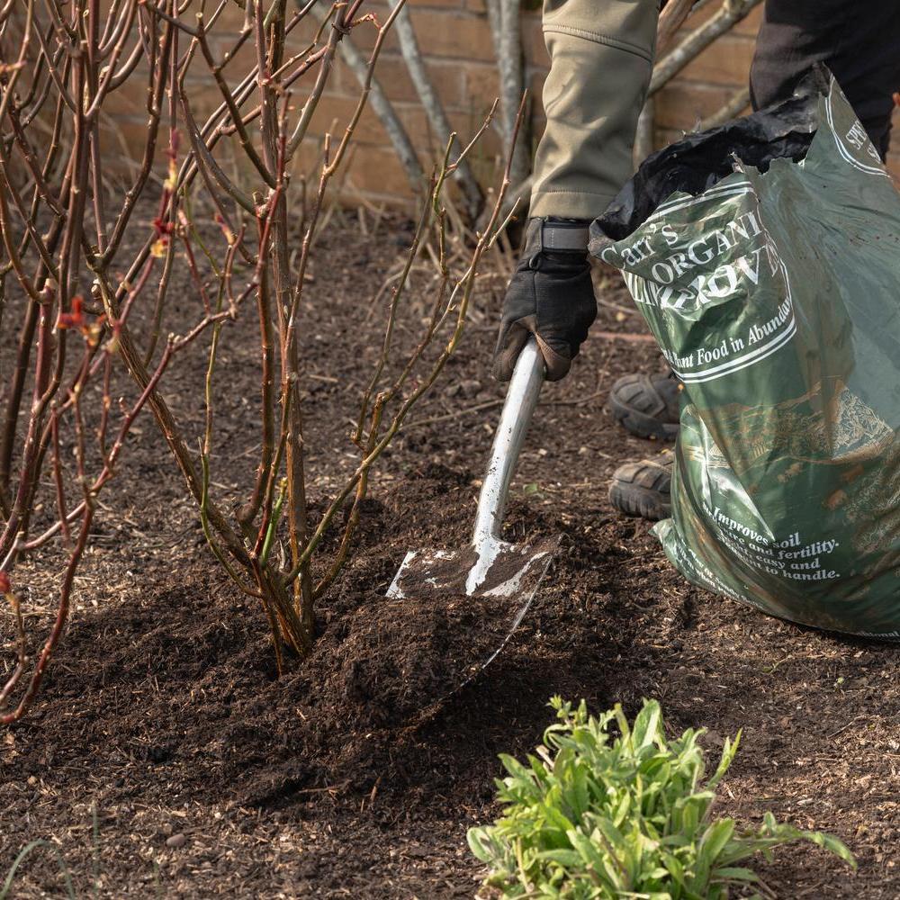Produkte wie organische Bodenverbesserer sind hierfür ideal, da sie sowohl Nährstoffe als auch Schutz bieten. Alternativ können auch gut verrotteter Mist, Gartenkompost oder Laubhumus verwendet werden. Eine Mulchschicht von etwa 5 cm (2 Zoll) bringt die besten Ergebnisse.