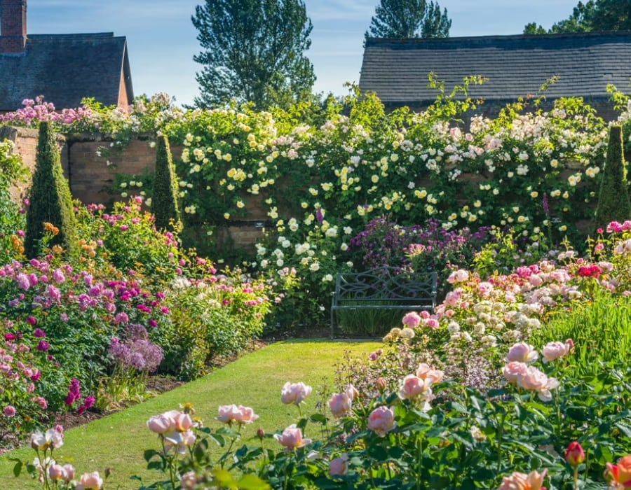 Nichts ist der Schönheit unserer Rosengärten in Shropshire, England, vergleichbar. Die Vielfalt der Farben und Düfte überwältigt die Sinne und macht sie zu einem wahrhaft atemberaubenden Erlebnis und einem wunderbaren Ort zum herumschlendern und entspannen.